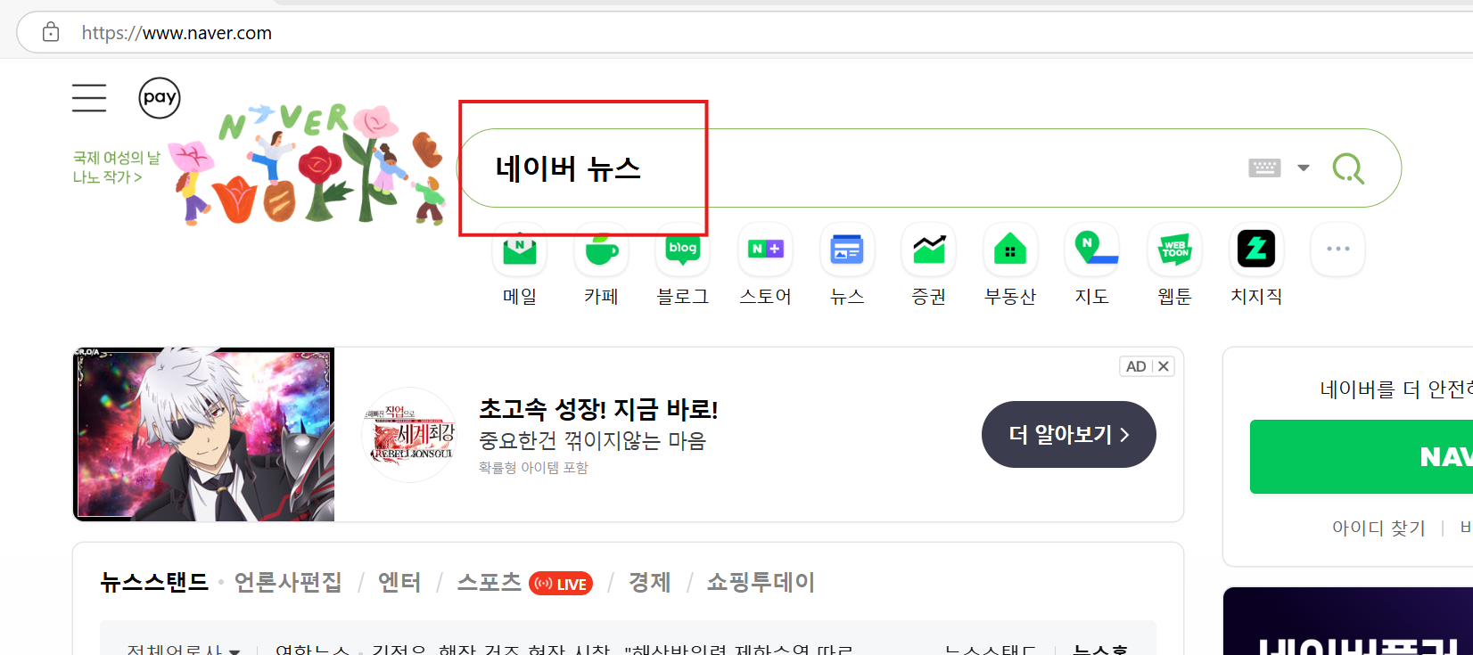먼저 네이버 검색창에 [네이버 뉴스] 입력 후 검색!
