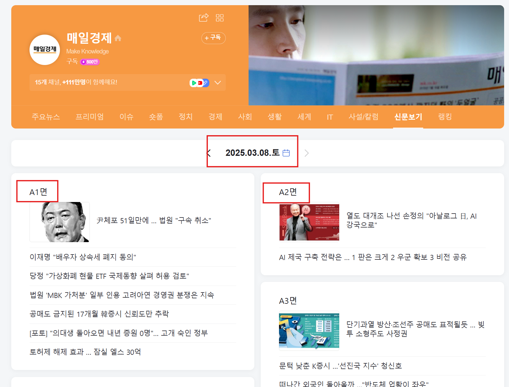 언론사에서 추려준 A면만 읽어보아도 오늘의 이슈를 쉽게 알수 있죠.